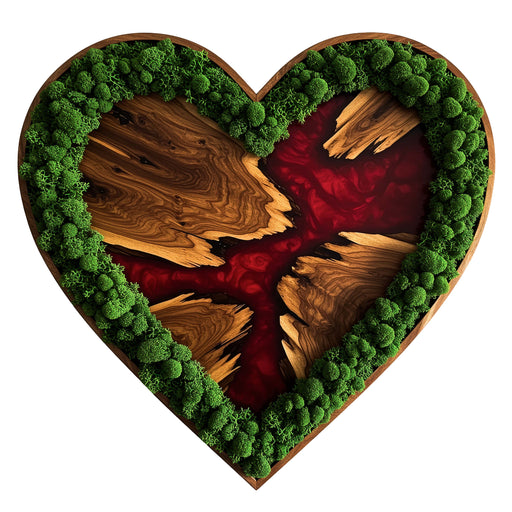 Piros szív - moha - Fa puzzle